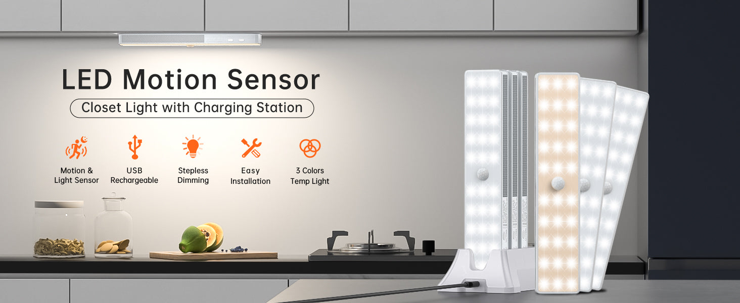 " These are great for my closet pantry. They are motion activated and the charge lasts a long time. I do like like that i can choose the brightness. I also like that there is a remote so i can turn them on or off before I enter. "